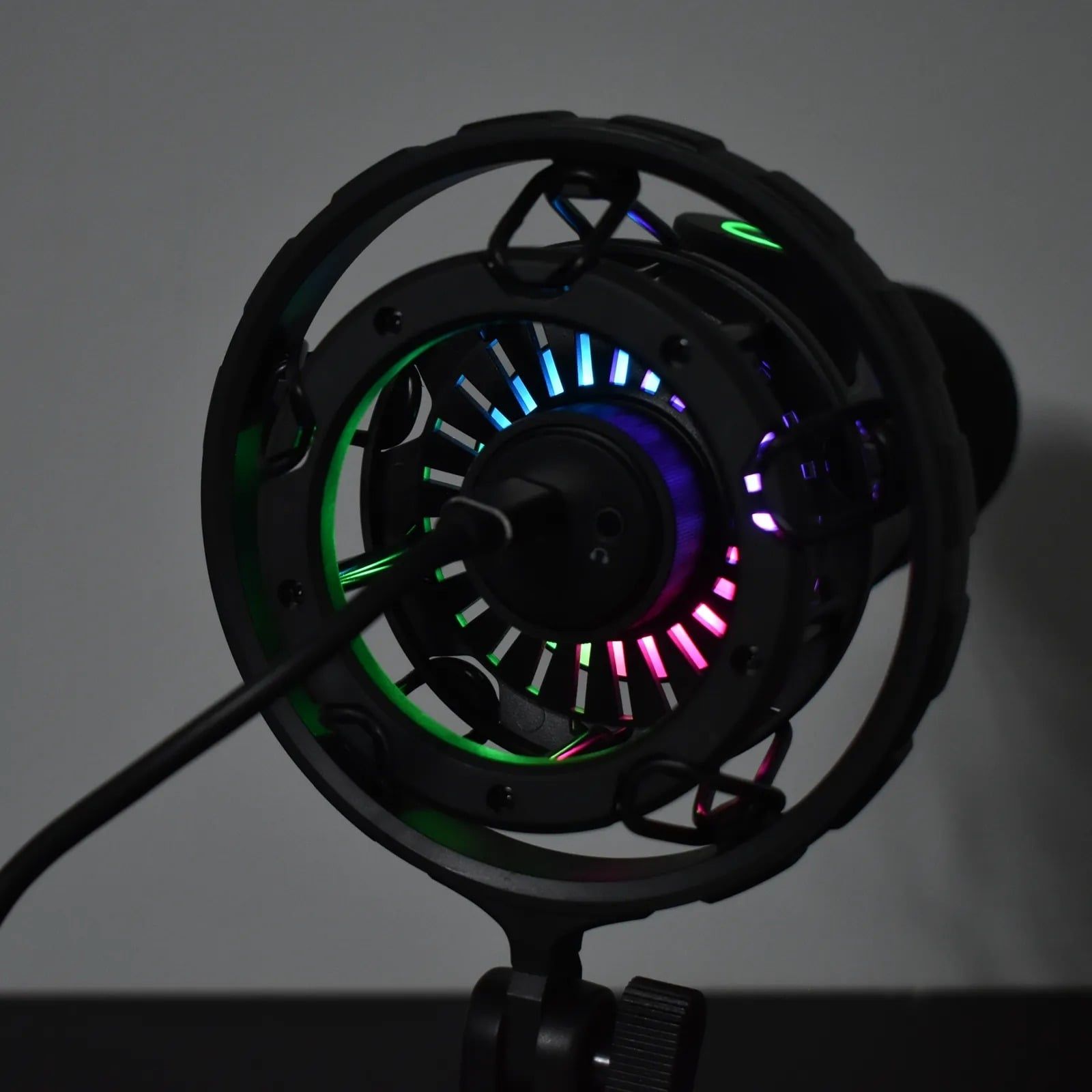 Điểm nhấn nổi bật của K658 chính là dải đèn LED RGB cầu vồng rực rỡ ở phần đáy, mang lại không khí cực "cháy" cho các buổi livestream hoặc quay video. Hãng cũng thiết kế một công tắc bật/tắt RGB riêng biệt ở phía sau để bạn tùy chỉnh theo không gian phòng. Bên cạnh đó, nút chạm tắt tiếng (Touch-to-mute) với đèn báo LED xanh/đỏ nhạy bén giúp bạn làm chủ luồng âm thanh ngay lập tức mà không phát ra tiếng click cơ học khó chịu.