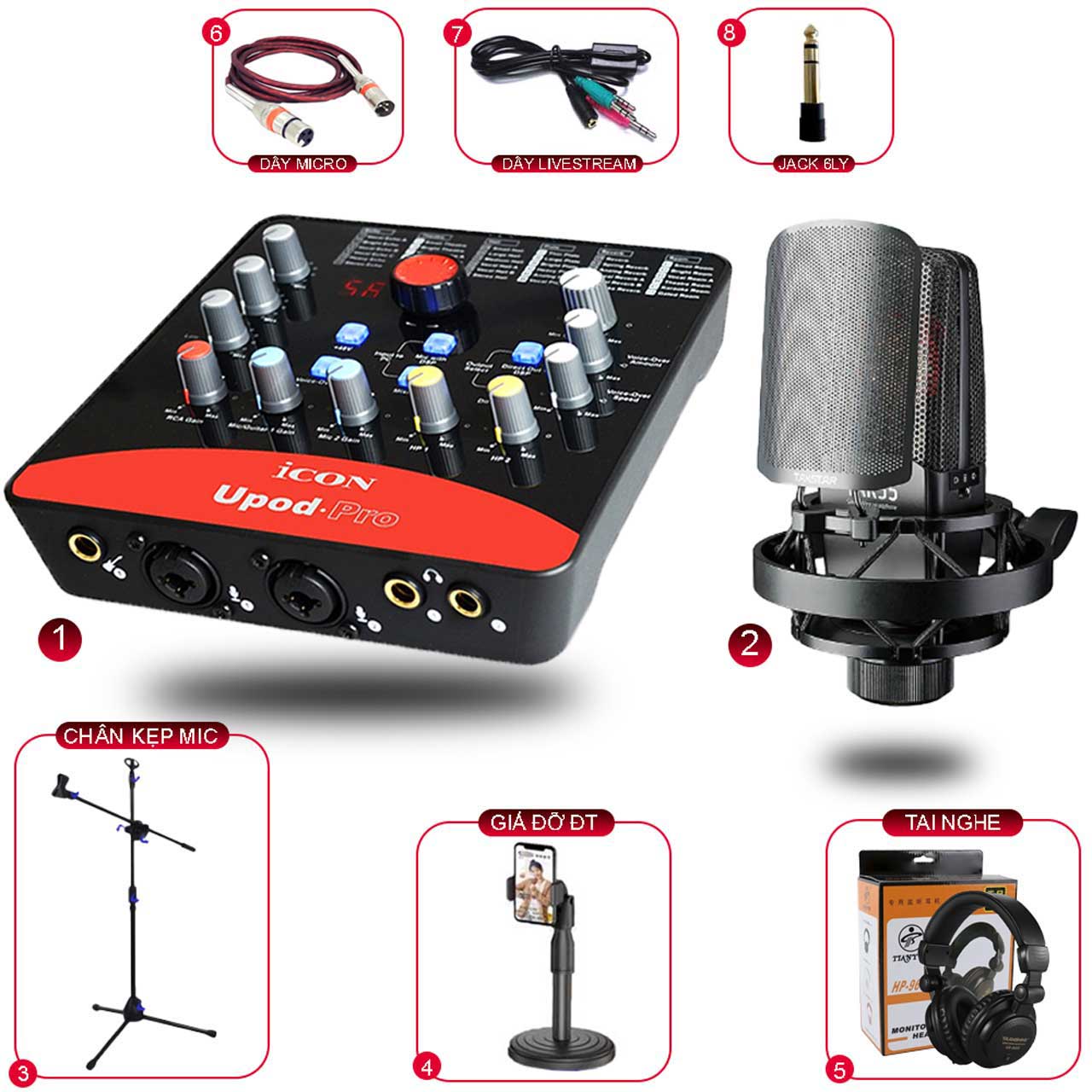 Bộ Icon Upod Pro - Mic Takstar Tak55 - Chân Mic Đứng - Phụ Kiện Xịn là combo chuyên nghiệp, chuẩn phòng thu với mức chi phí vừa phải để bạn có thể thoải mái sở hữu một phòng thu âm tại gia tuyệt vời. Đến với Lâm Phát Studio, chúng tôi đảm bảo sẽ cung cấp cho bạn những thiết bị và dịch vụ thu âm tốt nhất