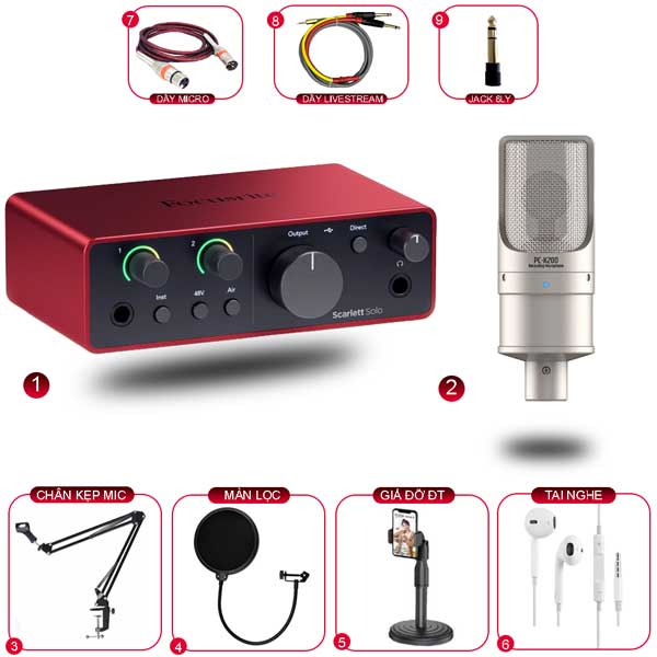 Và không những vậy Combo Solo Gen 4 Micro K200 còn được kèm theo các sản phẩm phụ hỗ trợ công việc thu âm, livestream được chuyên nghiệp hơn.