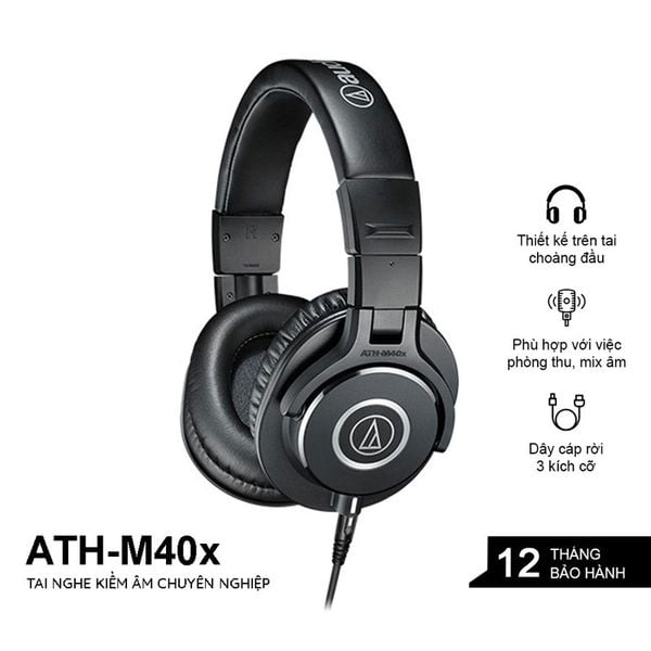 Headphone Audio Technica ATH M40X một chiếc tai nghe kiểm âm Closed back nằm trong dòng M-series của Audio technica. Tai nghe này có ưu điểm là chất âm cân bằng nên việc kiểm âm rất chuẩn và độ chính xác cao trên toàn bộ dải tần.